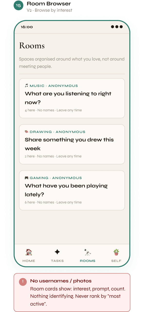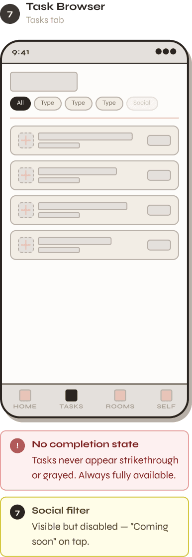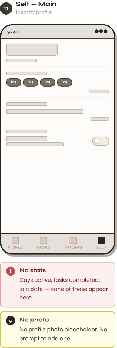 Home · Tasks · Rooms · Self
