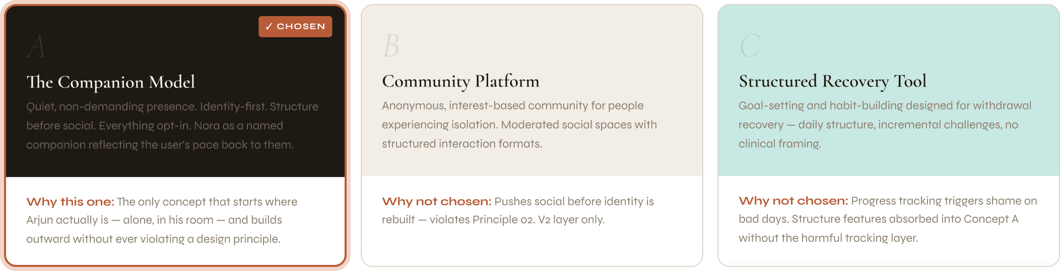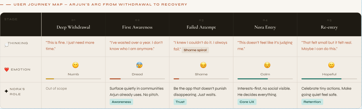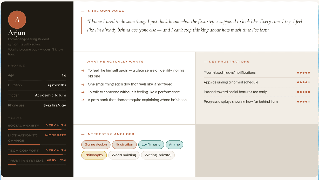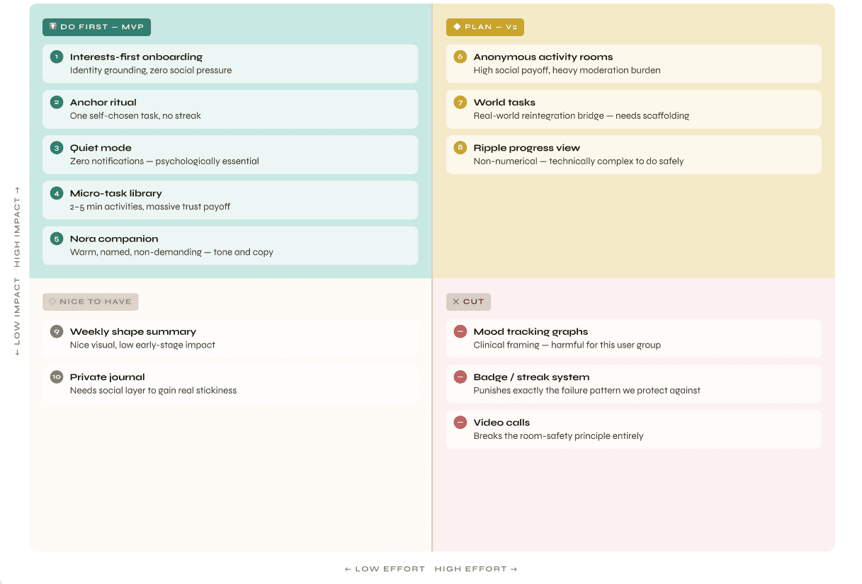 MVP Feature Set — 5 features, built around one constraint: never make Arjun feel like he failed