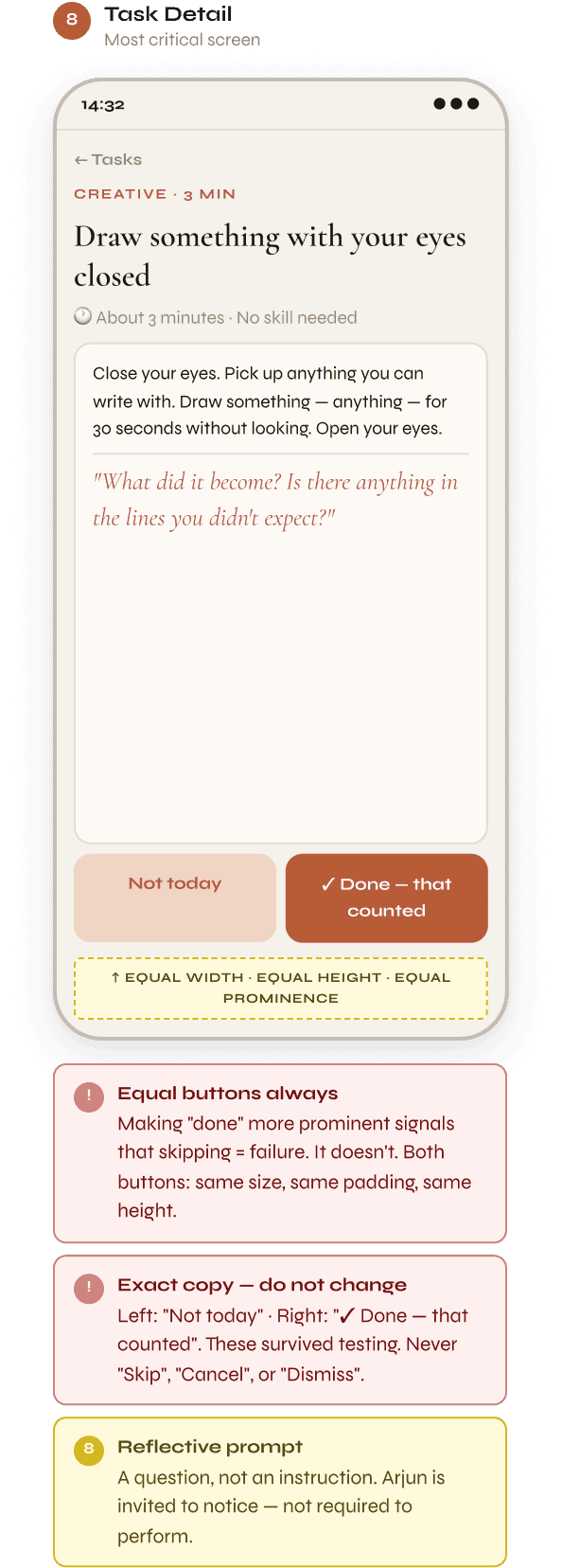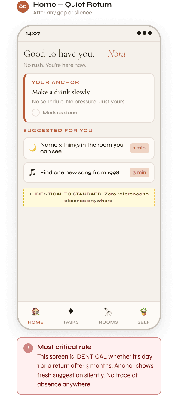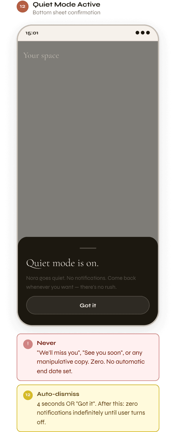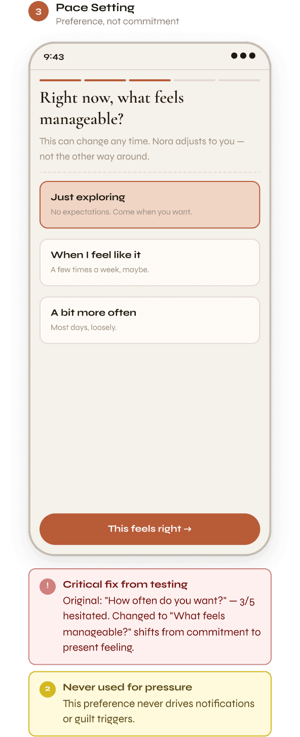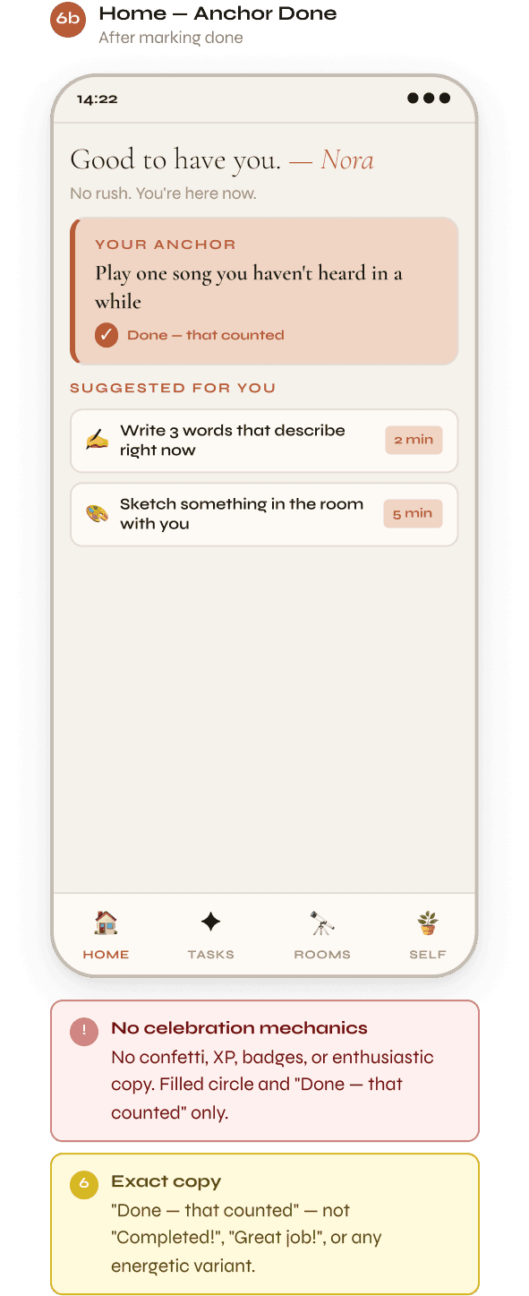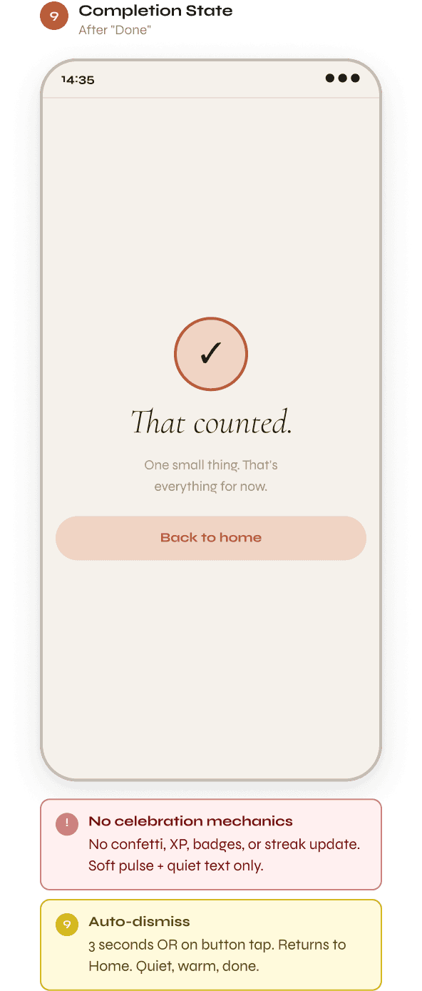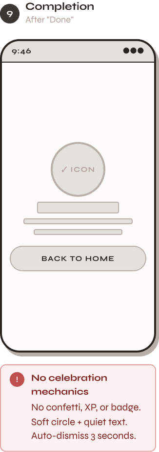 → No guilt-based notifications