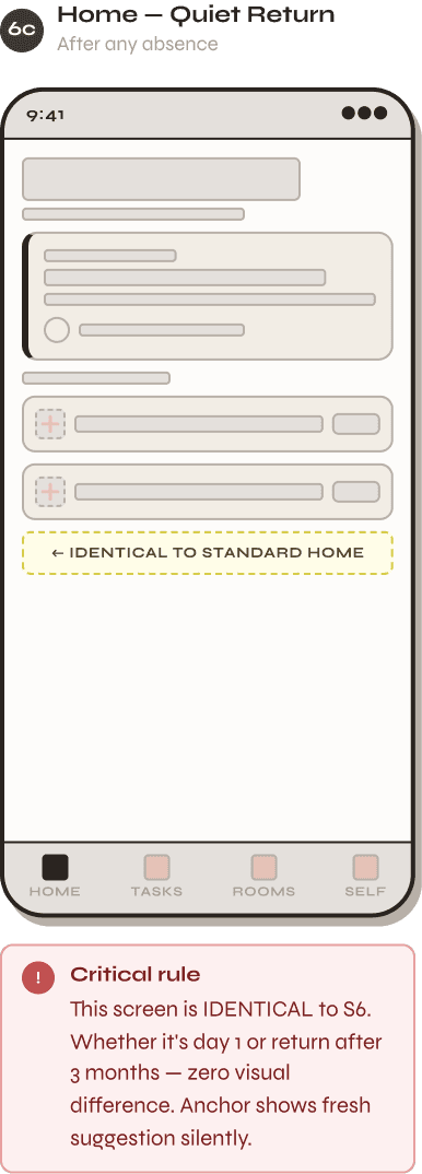 Home Screen — Identical every time