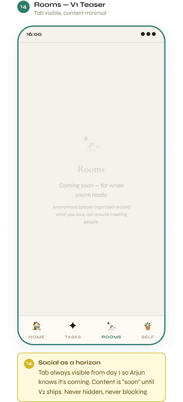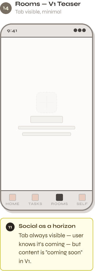 Solo features unlock before social features — always.