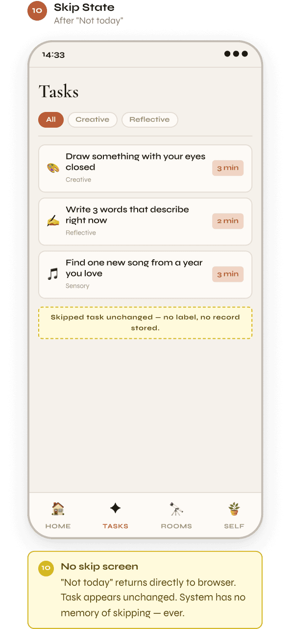 → Zero-judgment tone